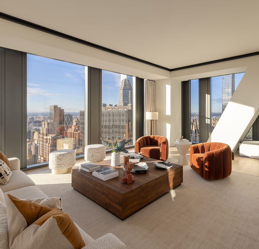THE COMPLETE OFFERING TERMS ARE IN AN OFFERING PLAN AVAILABLE FROM SPONSOR. FILE NO. CD14-0230 (“PLAN”). Sponsor: W2005/Hines West Fifty-Third Realty, LLC, 53 West 53rd Street, Unit 38C, New York, New York 10019. Notwithstanding anything to the contrary herein, Sponsor reserves the right to make changes in accordance with Plan (including without limitation substitutions for equal or better quality) and makes no representations except as may be set forth in the Offering Plan. Views and light vary and Sponsor makes no representation that any future construction in the city will not result in the obstruction of any views or light. All depictions of staging, furniture, décor, artwork, accessories, and other personal property and landscaping are for illustrative purposes only and not included in the sale unless provided for in the Plan if at all. Measurements and square footages are approximate, subject to variances and tolerances, and exceed usable floor area. No representations are made regarding the continued existence of the 53 restaurant or any other named establishments in the vicinity. Amenities and services are subject to regulation and may be subject to fees or additional conditions, including without limitation storage lockers and wine cellars which are offered for sale pursuant to a licensing arrangement subject to additional pricing. Certain finishes, fixtures, or other design details described in this website may not be applicable to or available for all condominium units. No representations or guarantees are made that any services or other benefits offered by the 53 restaurant, MoMA, and any of the condominium’s program partners are not subject to any material or immaterial terms or conditions that may or may not be disclosed herein or will not be discontinued, suspended, or materially modified at any time.